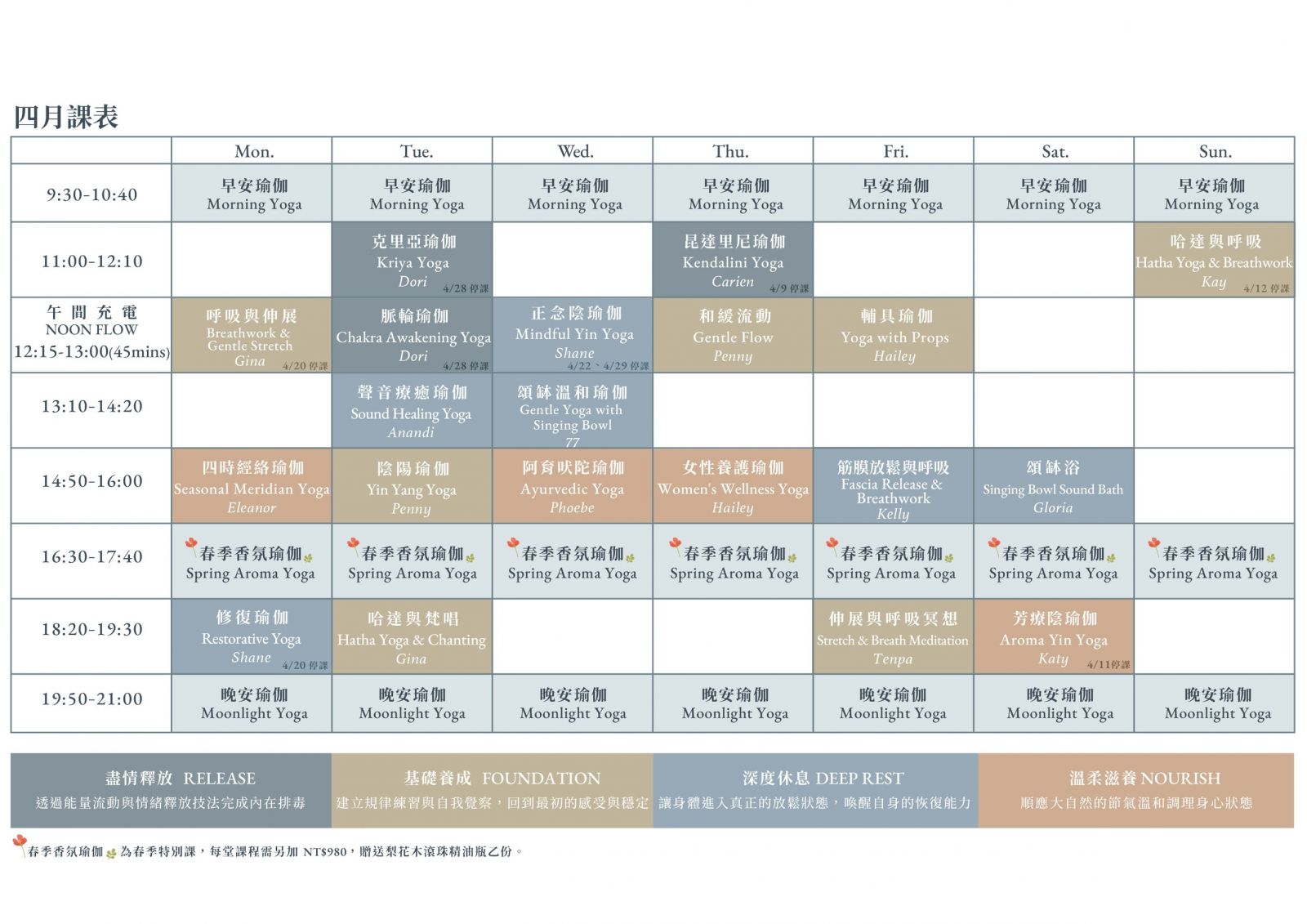 AVATA Wellness | 4月課表