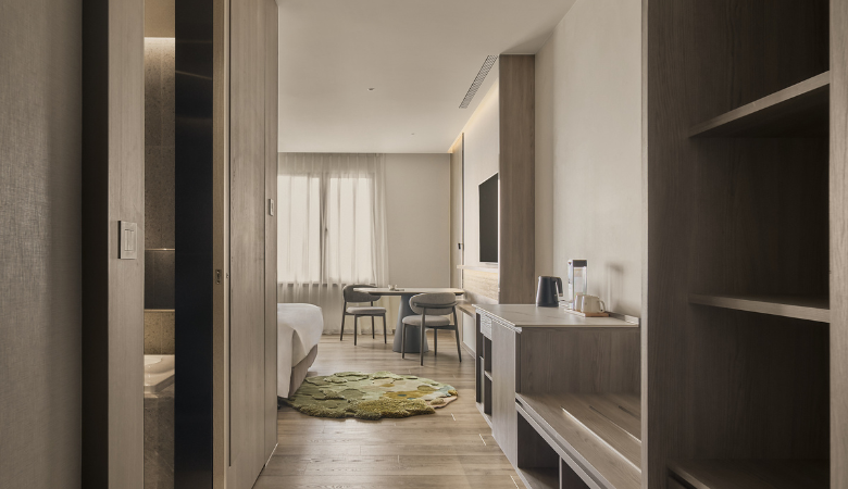 ゆとりある10坪の空間、大きなシングルベット一台をご用意。 睡眠を重視される方に最適です。 柔らかな照明と温かみのある色調が、心身をリラックスさせ、 ひとときひとときが静謐な休息の時間へとなるでしょう。